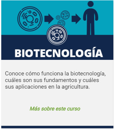 La preparación de este curso fue inspirada en las experiencias de uso responsable de la biotecnología en países como Argentina, Chile, Brasil y México, con el ánimo de compilarla y compartirla con el resto de países de Latinoamérica. Conoce cómo funciona la biotecnología, cuáles son sus fundamentos y cuáles sus aplicaciones en la agricultura a través de cuatro módulos: