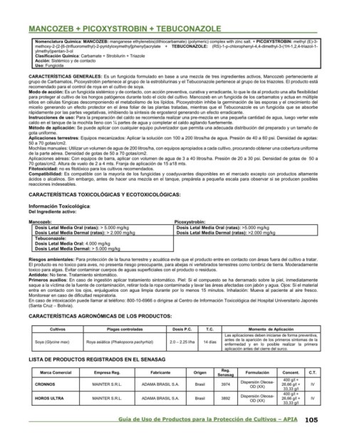 Nomenclatura Química: MANCOZEB: manganese ethylenebis(dithiocarbamate) (polymeric) complex with zinc salt. + PICOXYSTROBIN: methyl (E)-3-