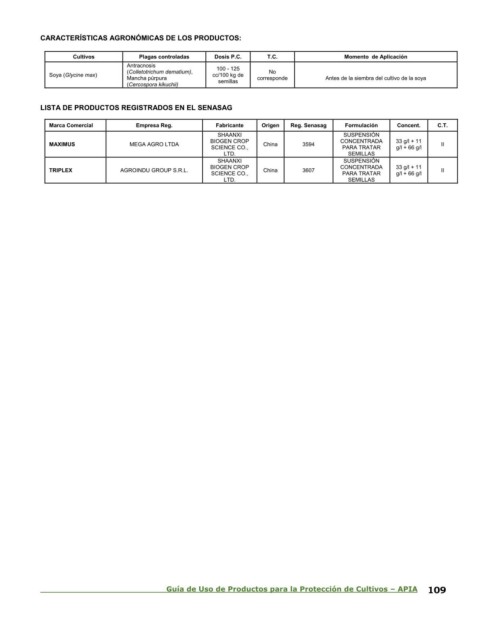 Guía de Uso de Productos para la Protección de Cultivos – APIA 109
