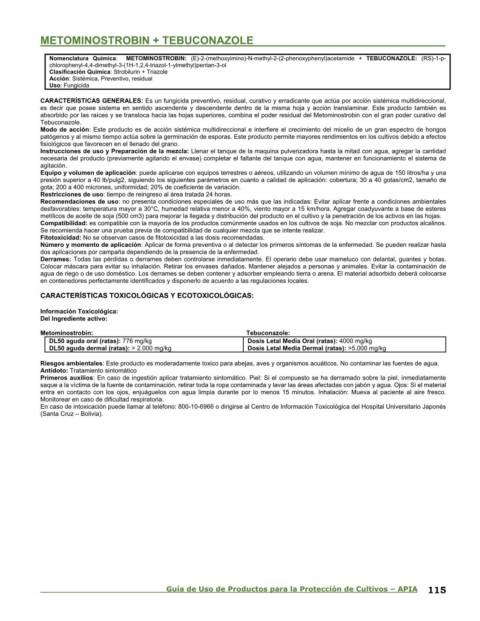 Nomenclatura Química: METOMINOSTROBIN: (E)-2-(methoxyimino)-N-methyl-2-(2-phenoxyphenyl)acetamide + TEBUCONAZOLE: (RS)-1-p-