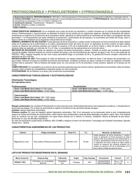 PROSOY TRIO, emplear boquillas de tipo cono hueco permitiendo llegar un promedio de 50 a 70 gotas/cm2.Procurar emplear volúmenes de