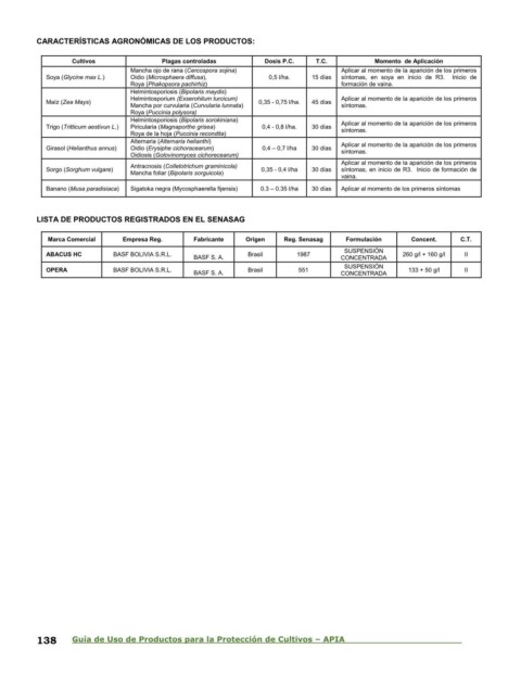 138 Guía de Uso de Productos para la Protección de Cultivos – APIA