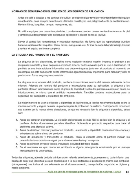 Guía de Uso de Productos para la Protección de Cultivos – APIA 15