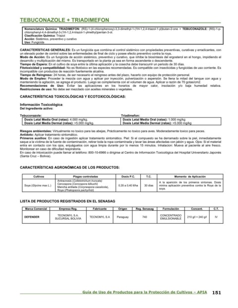 Nomenclatura Química: TRIADIMEFON: (RS)-1-(4-chlorophenoxy)-3,3-dimethyl-1-(1H-1,2,4-triazol-1-yl)butan-2-one + TEBUCONAZOLE: (RS)-1-p-
