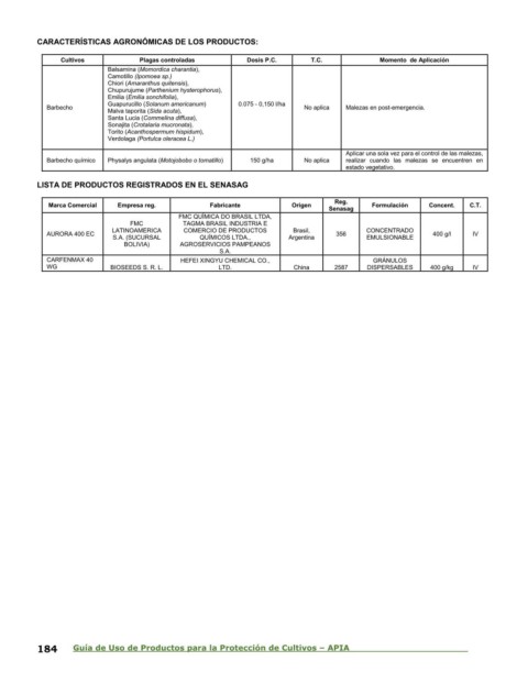 184 Guía de Uso de Productos para la Protección de Cultivos – APIA