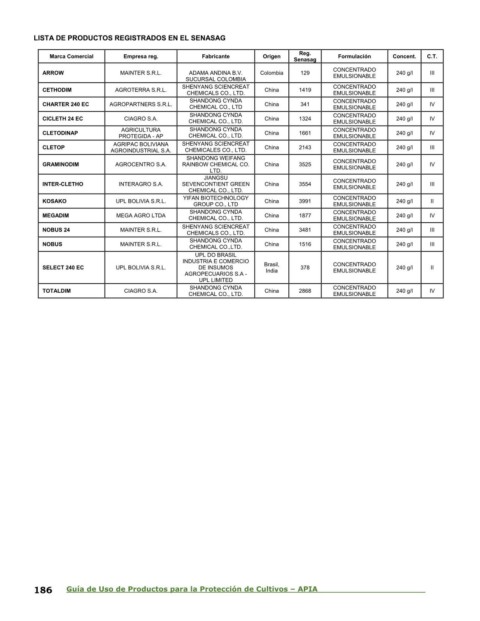 186 Guía de Uso de Productos para la Protección de Cultivos – APIA