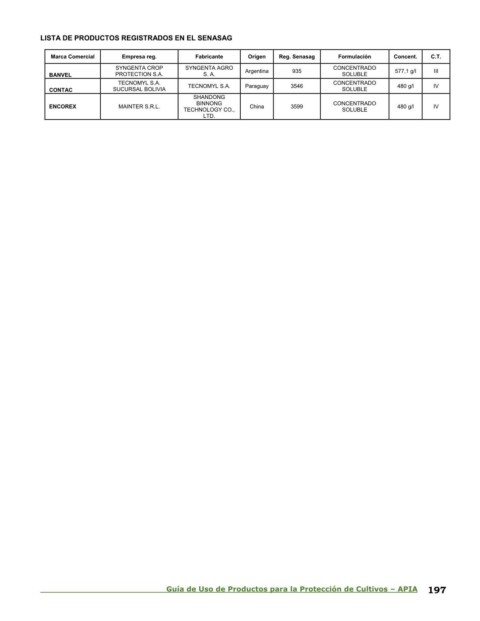 Guía de Uso de Productos para la Protección de Cultivos – APIA 197