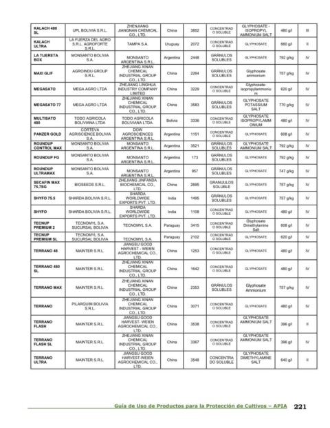 KALACH 480 UPL BOLIVIA S.R.L. JIANGNAN CHEMICAL China 3852 CONCENTRAD ISOPROPYL 480 g/l III