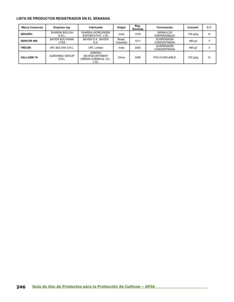 246 Guía de Uso de Productos para la Protección de Cultivos – APIA