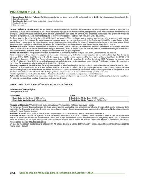 pertenece al grupo de las Piridinas y el 2,4- D que pertenece al grupo de los Fenoxiaceticos, este producto es de aplicación foliar en cobertura total
