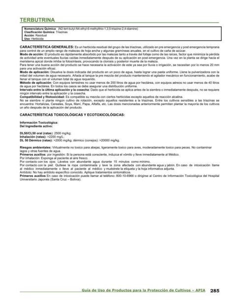 Guía de Uso de Productos para la Protección de Cultivos – APIA 285