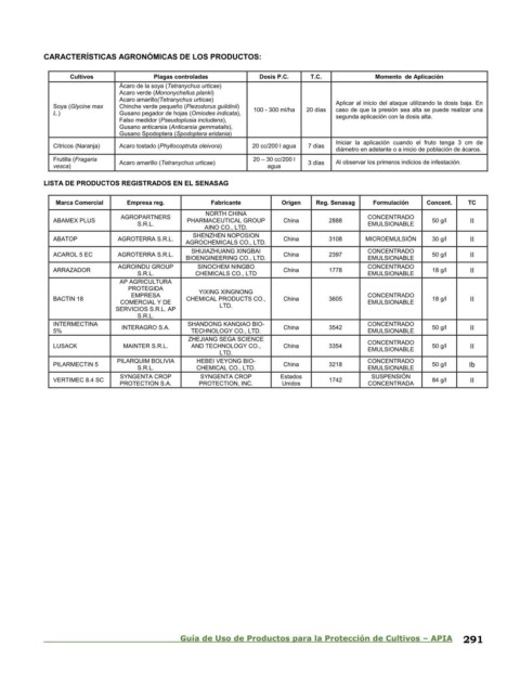 Guía de Uso de Productos para la Protección de Cultivos – APIA 291