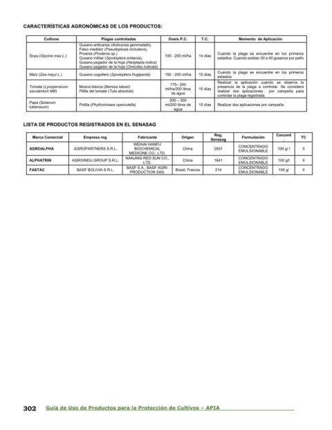 302 Guía de Uso de Productos para la Protección de Cultivos – APIA