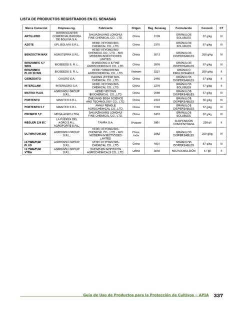 Marca Comercial Empresa reg. Fabricante Origen Reg. Senasag Formulación Concent. CT