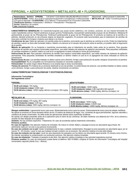 cuatro ingredientes activos: Fipronil pertenece al grupo quimico Fenilpirazoles, Azoxystrobin perteneciente al grupo de las Strobilurin, Metalaxyl-M