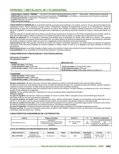 desarrollo vegetativo. El producto está recomendado para el tratamiento de semillas de soya para controlar los hongos e insectos que atacan a la