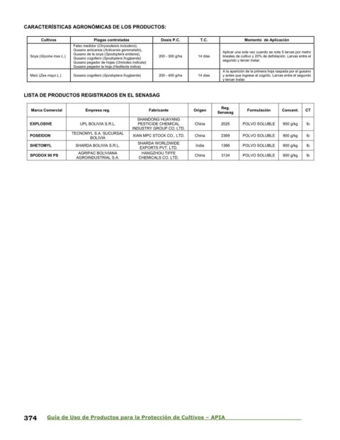374 Guía de Uso de Productos para la Protección de Cultivos – APIA