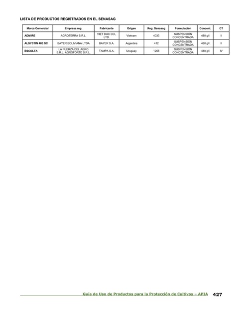 Guía de Uso de Productos para la Protección de Cultivos – APIA 427