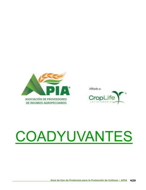 COADYUVANTES Guía de Uso de Productos para la Protección de Cultivos – APIA 429