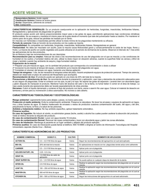 Guía de Uso de Productos para la Protección de Cultivos – APIA 431