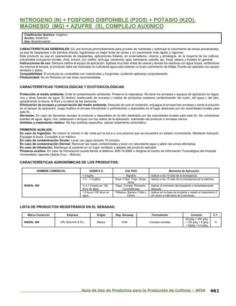 Guía de Uso de Productos para la Protección de Cultivos – APIA 461