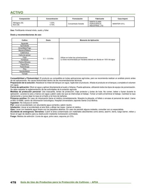 478 Guía de Uso de Productos para la Protección de Cultivos – APIA