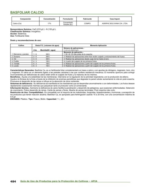 484 Guía de Uso de Productos para la Protección de Cultivos – APIA