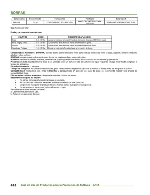 488 Guía de Uso de Productos para la Protección de Cultivos – APIA