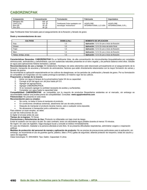490 Guía de Uso de Productos para la Protección de Cultivos – APIA