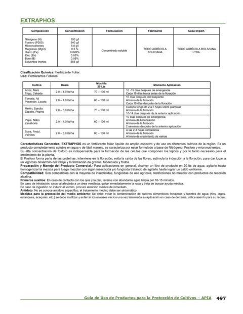 Características Generales: EXTRAPHOS es un fertilizante foliar líquido de amplio espectro y de uso en diferentes cultivos de la región. Es un
