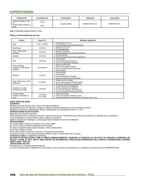 498 Guía de Uso de Productos para la Protección de Cultivos – APIA