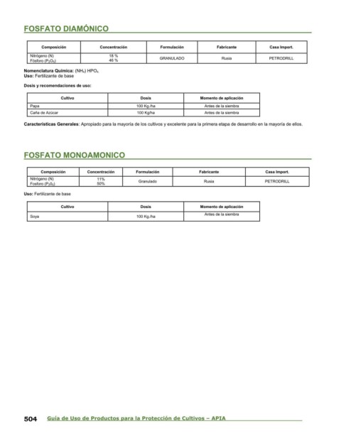 504 Guía de Uso de Productos para la Protección de Cultivos – APIA