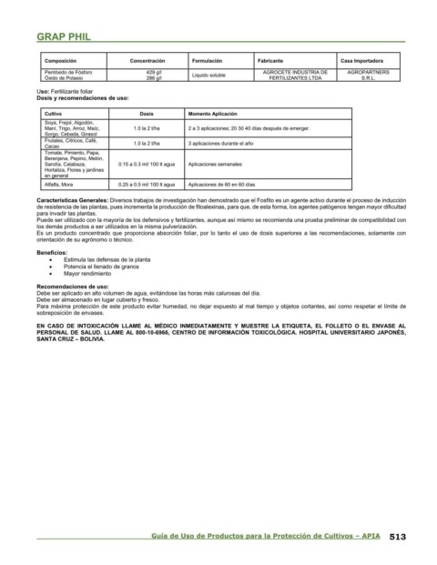 Guía de Uso de Productos para la Protección de Cultivos – APIA 513