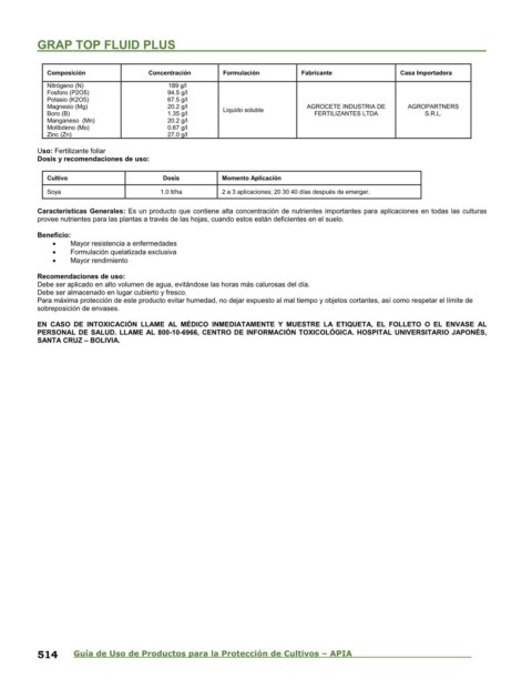 514 Guía de Uso de Productos para la Protección de Cultivos – APIA