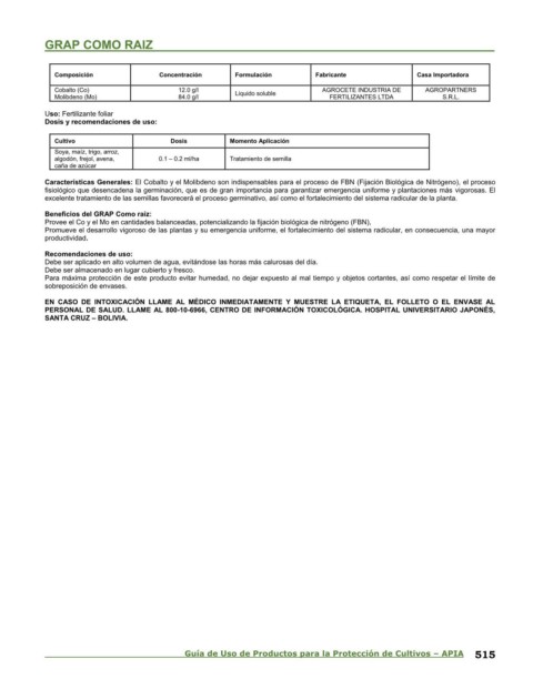 Guía de Uso de Productos para la Protección de Cultivos – APIA 515