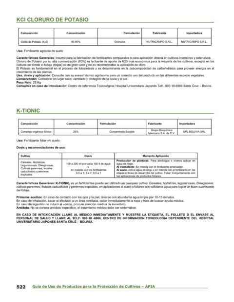 Características Generales: K-TIONIC, es un fertilizantes puede ser utilizado en cualquier cultivo: Cereales, hortalizas, leguminosas, Oleaginosas,