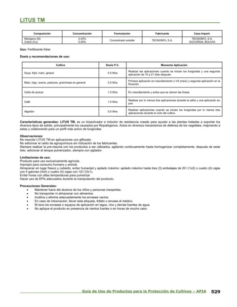 Guía de Uso de Productos para la Protección de Cultivos – APIA 529
