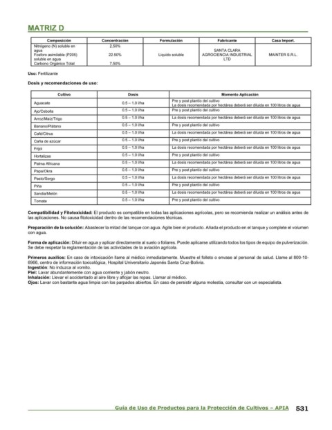 Guía de Uso de Productos para la Protección de Cultivos – APIA 531