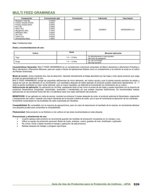 Guía de Uso de Productos para la Protección de Cultivos – APIA 539