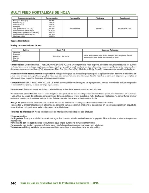 540 Guía de Uso de Productos para la Protección de Cultivos – APIA
