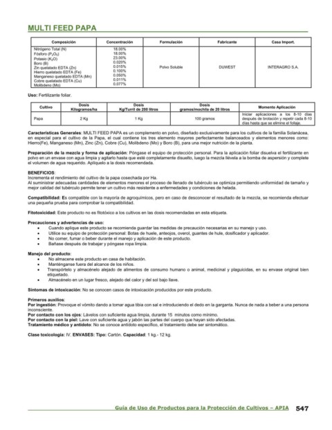 Guía de Uso de Productos para la Protección de Cultivos – APIA 547