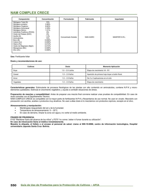 550 Guía de Uso de Productos para la Protección de Cultivos – APIA