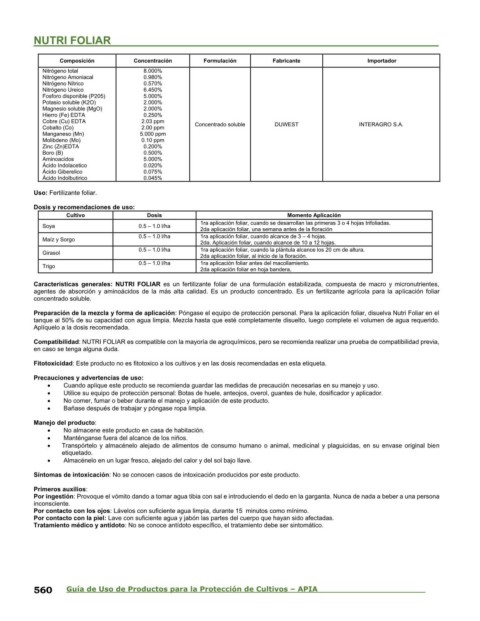 Características generales: NUTRI FOLIAR es un fertilizante foliar de una formulación estabilizada, compuesta de macro y micronutrientes,