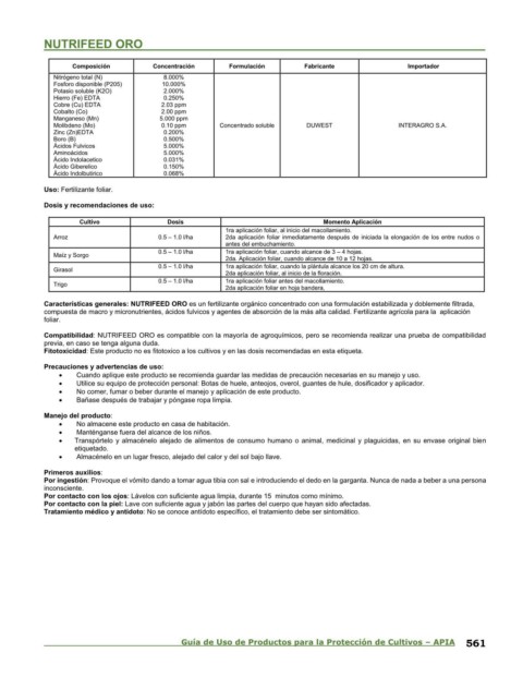 Guía de Uso de Productos para la Protección de Cultivos – APIA 561