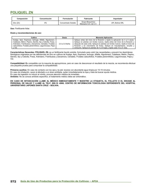 572 Guía de Uso de Productos para la Protección de Cultivos – APIA