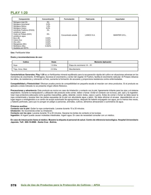 578 Guía de Uso de Productos para la Protección de Cultivos – APIA