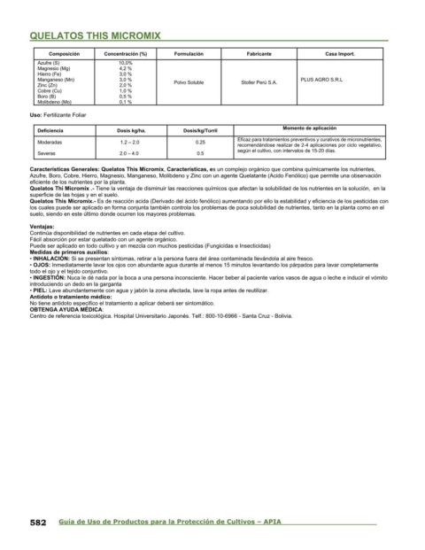 Características Generales: Quelatos This Micromix, Características, es un complejo orgánico que combina químicamente los nutrientes,