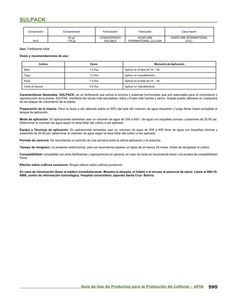 Guía de Uso de Productos para la Protección de Cultivos – APIA 595