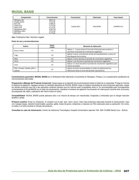 Guía de Uso de Productos para la Protección de Cultivos – APIA 607