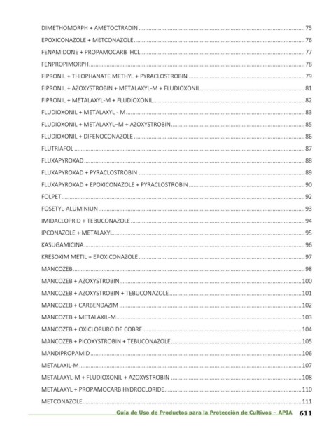 METALAXYL + PROPAMOCARB HYDROCLORIDE ..................................................................................... 110